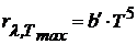 Второй закон Вина: максимальное значение спектральной плотности энергетической светимости прямо пропорционально пятой степени абсолютной температуры: