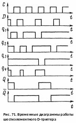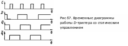 Временные диаграммы работы рассмотренного D-триггера показаны на рис. 67.