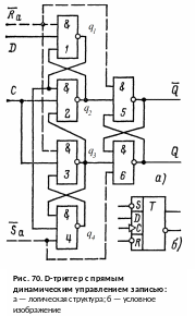 На рис. 69 изображена логическая структура D-триггера со статическим управлением на элементе И-ИЛИ-НЕ и двух инверторах.