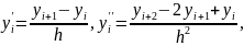 Заменим приближенно в каждом внутреннем узле производные конечноразностными отношениями: