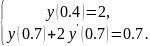Разбив отрезок [0,4; 0,7] на части с шагом h=0,1 получим четыре узловые точки c абсциссами x0=0,4; x1=0,5; x2=0,6; x3=0,7. Две точки x0=0,4 и x3=0,7 являются конечными, а две другие – внутренними.