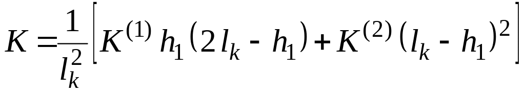 Если этот размер захватывает два слоя грунта основания с различными значениями , то вычисляется приведенное значение коэффициента пропорциональности по формуле:
