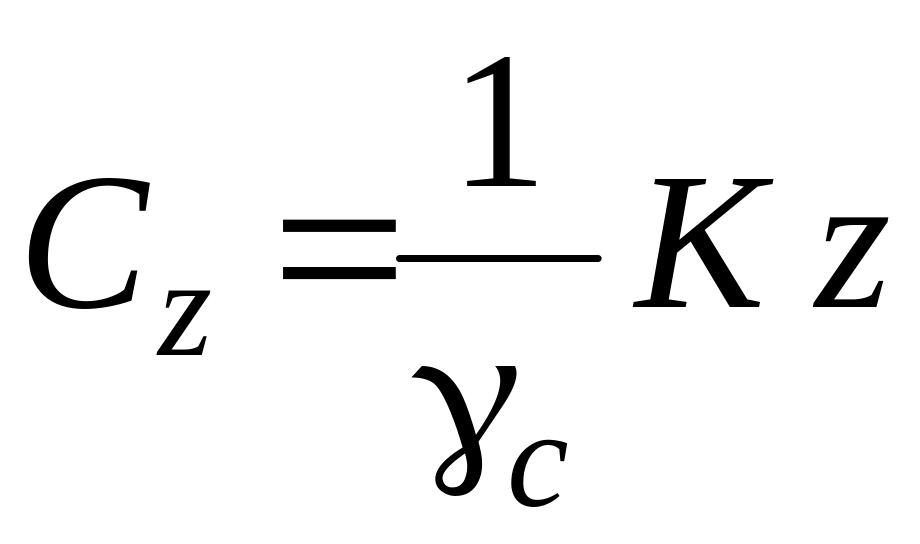 При многослойном основании коэффициент определяют по грунту, расположенному ниже уровня размыва в случае высокого ростверка или ниже подошвы ростверка в случае фундамента с низким ростверком на глубину (в м) [3,9]: