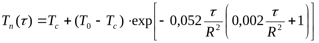 де Tп – температура поверхні поковки, oC; Tс – температура навколишнього середовища, oC; T0 – початкова температура поковки, oC; – час процесу, хвилин; R – радіус поковки, м.