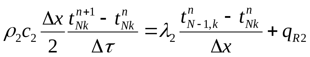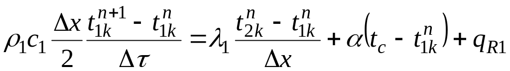 Розрахунок за формулами (3.8) ‑ (3.11) виконується для k = 1,2,…, M до закінчення процесу нагріву.