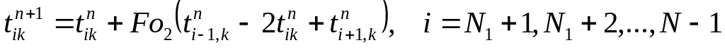 Звідси отримуємо розрахункові формули для находження температур в вузлах сітки: