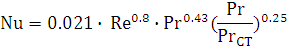 Nu = 0.08∙ Re0.9∙ Pr0.43