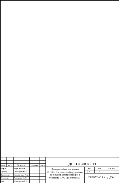 Цель проекта: изучить электроснабжение ОПТСЭ-1 и электрооборудование дизельной электростанции в условиях ПАО «Ростелеком».