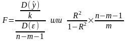 Из данного уравнения следует следующее соотношение между дисперсиями наблюдаемых значений переменной D(y), ее расчетных значений D(ŷ) и остатков D(е) (остаточной дисперсией Dост = D(ε)):