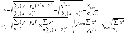 Стандартные ошибки параметров регрессии (ma, mb) определяются соотношениями: