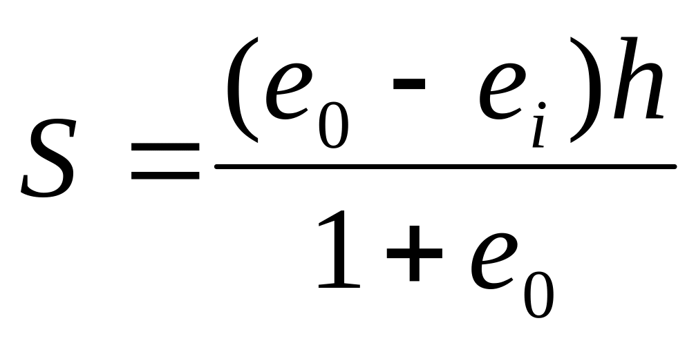 e0 – начальное значение коэффициента пористости, отвечающее природному давлению на половине мощности слоя;