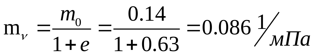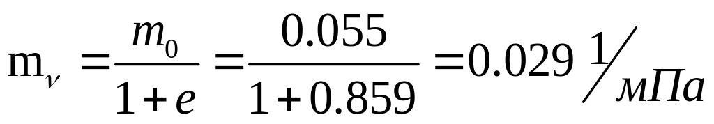 Модуль деформации Ε=β/mυ=0,743/0,086=8,63МПа. По модулю деформации пески относятся к среднесжимаемым.