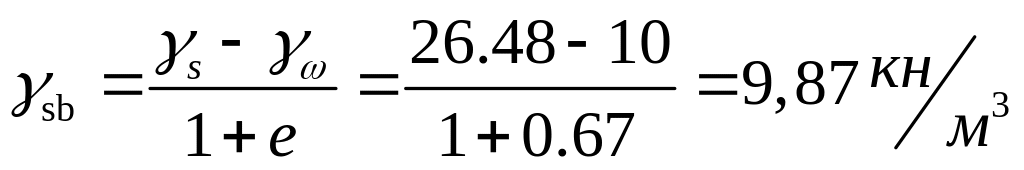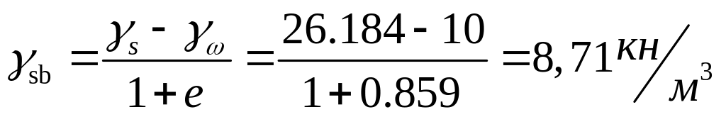 Удельный вес грунта с учетом взвешиваемого действия воды