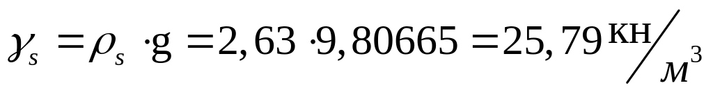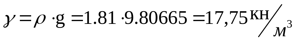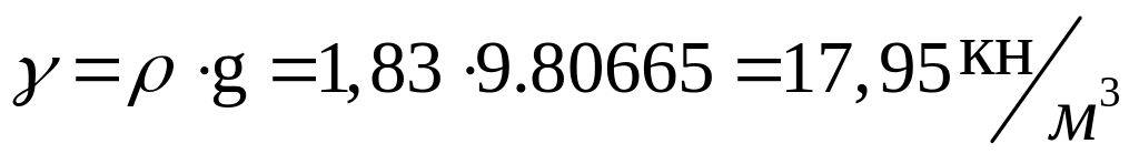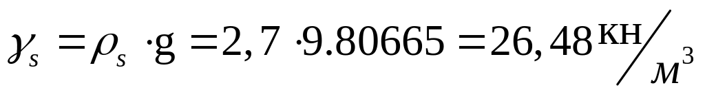 где ρ – плотность грунта; g=9,80665 м/с2 – ускорение свободного падения;