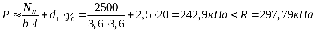 Условия выполняются, принимаем фундамент с размерами подошвы 3,6х3,6, W=7,78 м3.