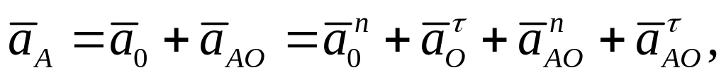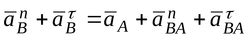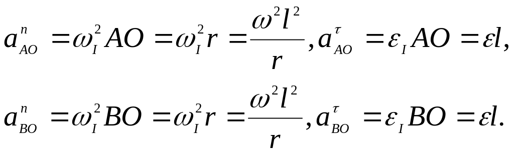 А және В нүктелерінің үдеулерін құрастыратын барлық векторларды суретке түсіріп, сосын (б) және (в) векторлық теңдеулерді координаталар өстеріне проекциялаймыз