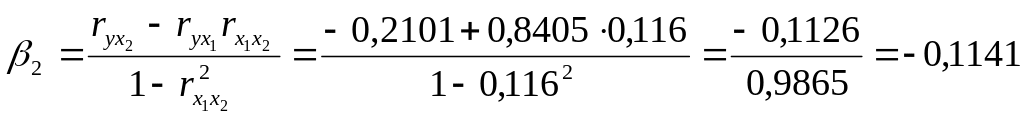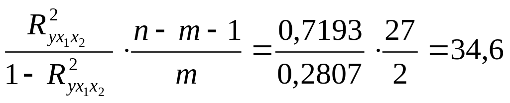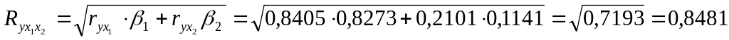 Аналогично проверим целесообразность включения в модель дополнительного фактора x2 после включенного ранее фактора x1. Расчет выполним с использованием показателей тесноты связи и :