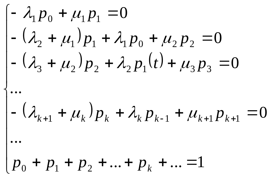 Розв’язуючі систему диференціальних рівнянь (3) з урахуванням початкових умов, можна визначити значення ймовірностей які нас цікавлять.