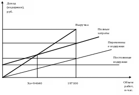 На первом этапе анализа определяется объем производства, обеспечивающий безубыточную работу фирмы и сроки его достижения по мере освоения производственной мощности. Безубыточный объем производства определяется исходя из условия: