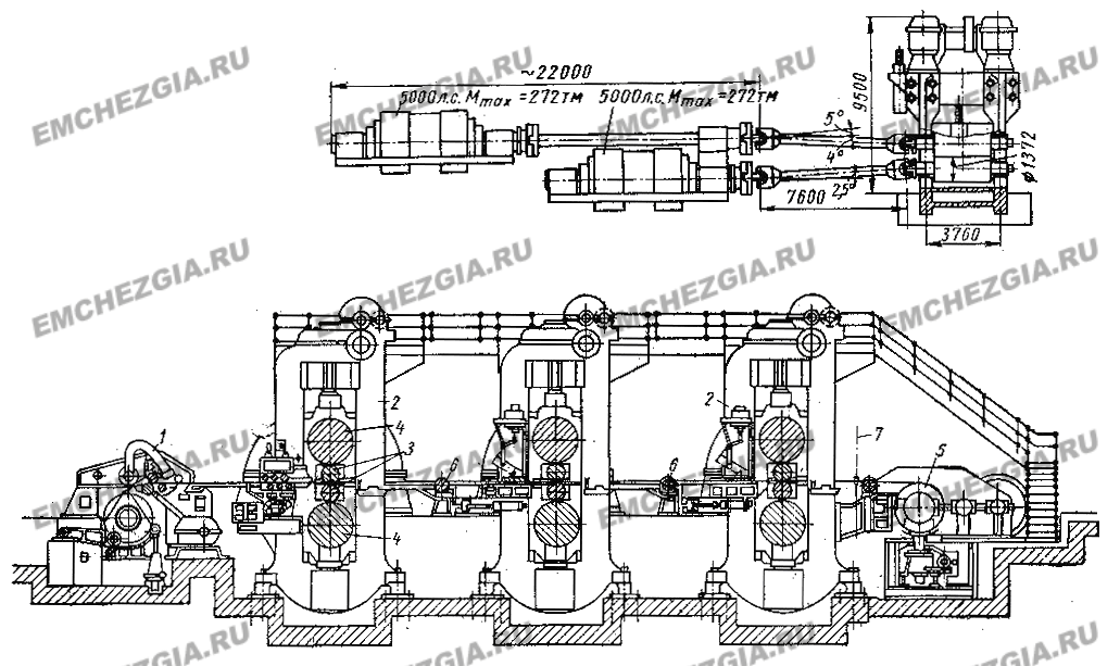 Рисунок 3.19. Схема блюминга с приводом валков от отдельных моторов и непрерывный триклетьевой стан для холодной прокатки