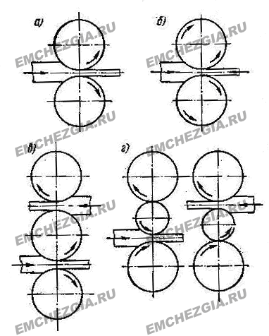 Рисунок. 3.15. Схема расположения валков в двухвалковом и трехвалковом стане
