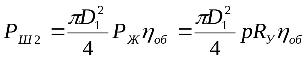 где hОБ — общий кпд пневмогидравлического привода (hОБ = 0,8...0,85).