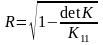 Индекс корреляции (коэффициент множественной корреляции) вычисляется по формуле