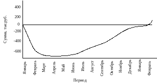 Из графика на рисунке видно, что с … по …. текущего года инвестиции будут увеличиваться и в ….. инвестиционный процесс закончится, после чего кривая пойдет вверх до …. месяца. Проект окупится в ….. следующего года после начала инвестирования, а затем будет приносить прибыль.