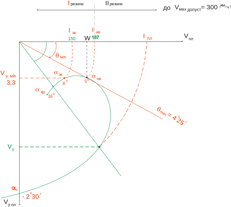 скорости от Vнв до Vmin (187км/ч – 117км/ч)