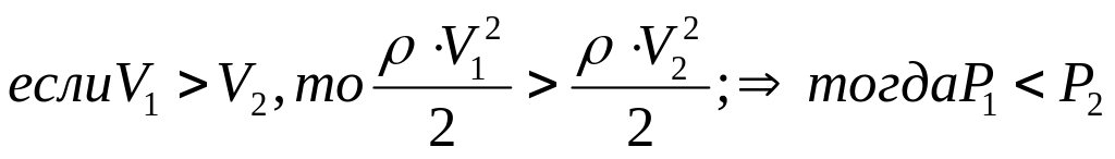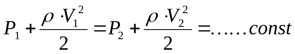 Этот закон показывает зависимость между скоростью потока в данном сечении и давление в том же сечении.