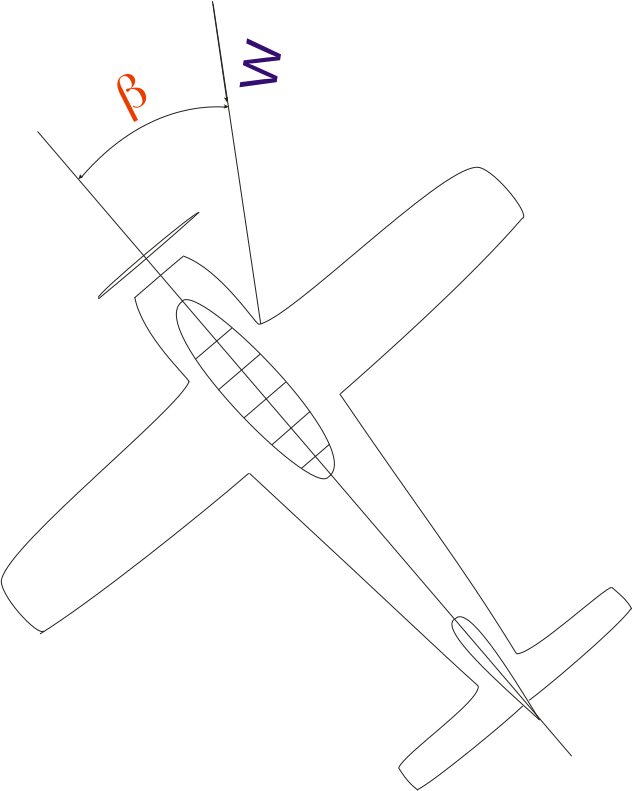 Угол скольжения (β) – называется угол между плоскостью симметрии самолёта и направлением скорости набегающего потока.