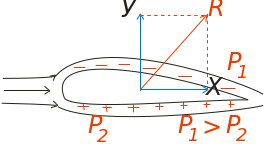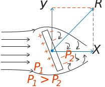 При несимметричном обтекании вследствие разности давлений и трений частиц воздуха о поверхность тела возникает полная аэродинамическая сила R, которая по правилу параллелограмма раскладывается на две составляющие: