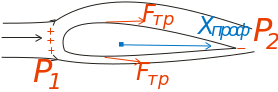 При симметричном обтекании тела возникает профильное сопротивление, состоящее из сопротивления давления и сопротивления трения.