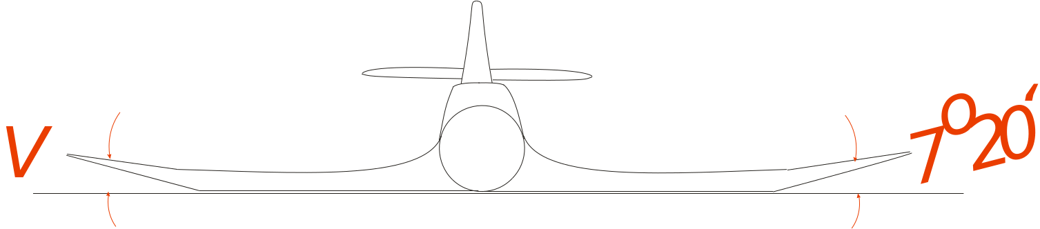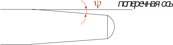 Углом поперечного V крыла – называется угол, заключённый между поперечной осью и нижней поверхностью крыла.