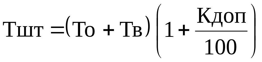 где Кдоп – коэффициент дополнительного времени по отношению к оперативному времени (сумма основного и вспомогательного времени), %.