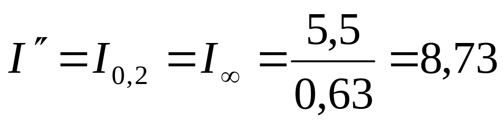 При питании от системы неограниченной мощности действующее значение установившегося трехфазного тока короткого замыкания I, кА, равно начальному сверхпереходному току I'' и току через 0,2 с I0,2,