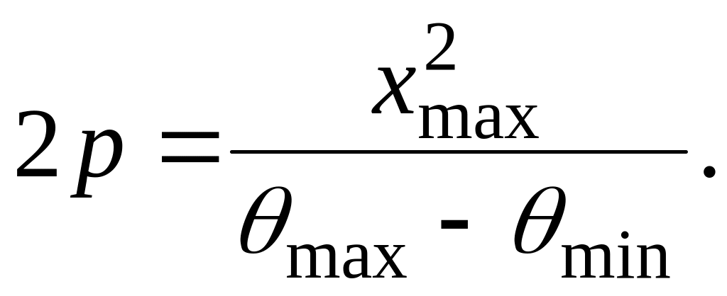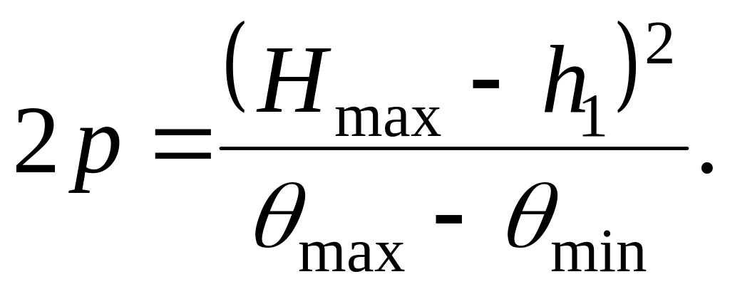 Для образующей с θmin х1=0 и следовательно уmin=0. Для образующей с θmax соответственно xmax=Hmax-h, где h – высота образующей с θmin. Отсюда находят уmax.