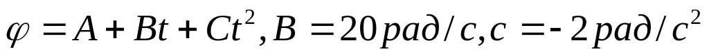 Қозғалмайтын өстi айнала дене мына заң бойынша айналады. уақыт кезiндегi өстегi нүктенiң бұрыштық жылдамдығын табу керек: