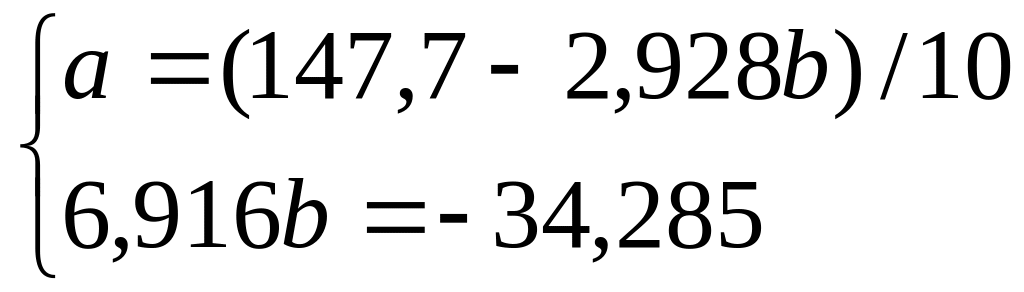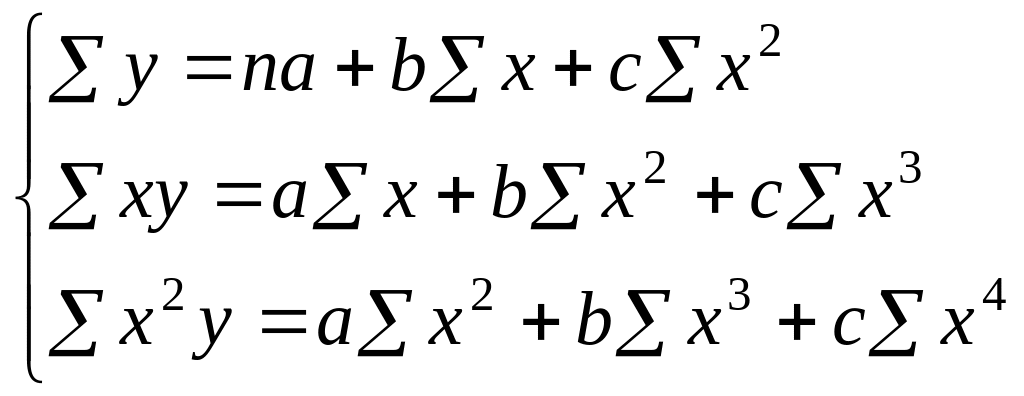 Для выравнивания показателя реализации мучных изделий в государственной торговле будем использовать такие функции: линейную, параболическую и гиперболическую. Параметры избранных для моделирования функций можно найти с помощью метода наименьших квадратов. На его основе для каждой из функций формируют специальную систему уравнений Гаусса. Для указанных функций приведем соответствующие системы: