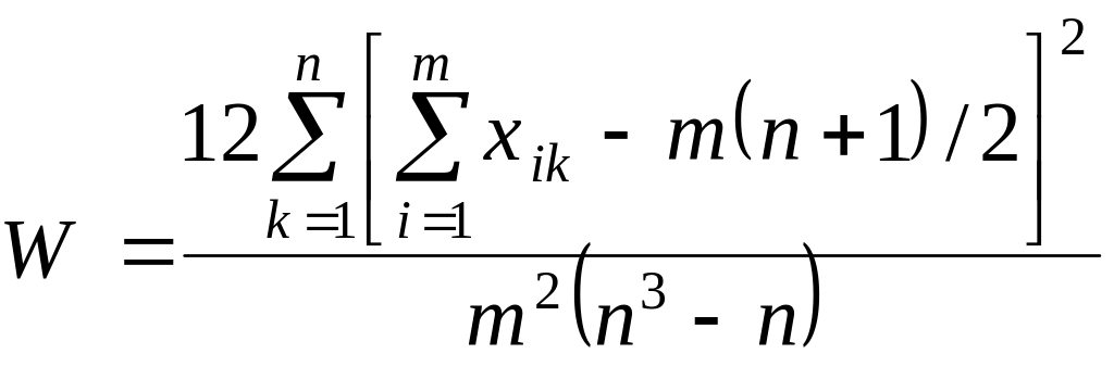 Оценка значимости коэффициента конкордации проводится следующим образом: