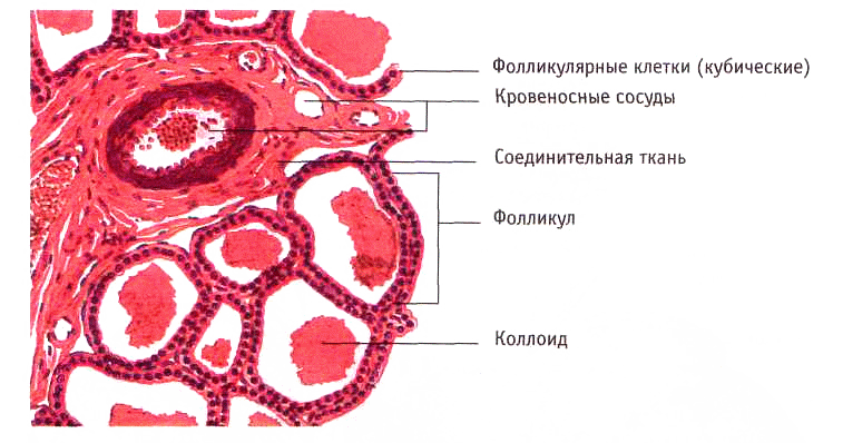 Рис. 11 Микроскопическое строение щитовидной железы.