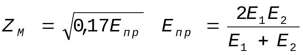 Расчётные контактные напряжения вычисляют, исходя из формулы Герца