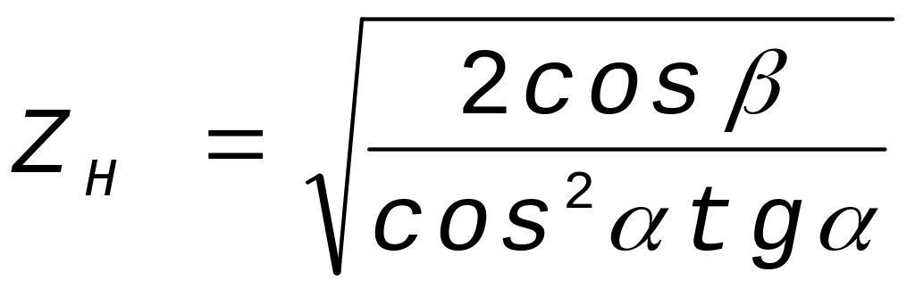 где α – угол зацепления при xs=0, при α=20о, ZH=2,5.