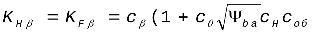 Коэффициенты KHβ и KFβ учитывают неравномерность распределения нагрузки по ширине зубчатых венцов из-за деформации валов и опор. Так концентрация нагрузки зависит от расположения опор и твёрдости материала.