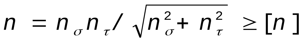 где [n]=1,3-1,5 - допускаемый коэффициент запаса прочности; nσ, nτ – коэффициенты запаса прочности по нормальным и касательным напряжениям