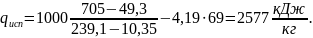 Удельный расход тепла на испарение влаги с учетом затрат на подогрев свежего воздуха, кДж/кг: