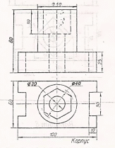 Построить сложный разрез, вычертить его на месте одного из видов.
