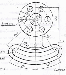 Построить сопряжения и деление окружности на равные части, линии построения оставить на чертеже.