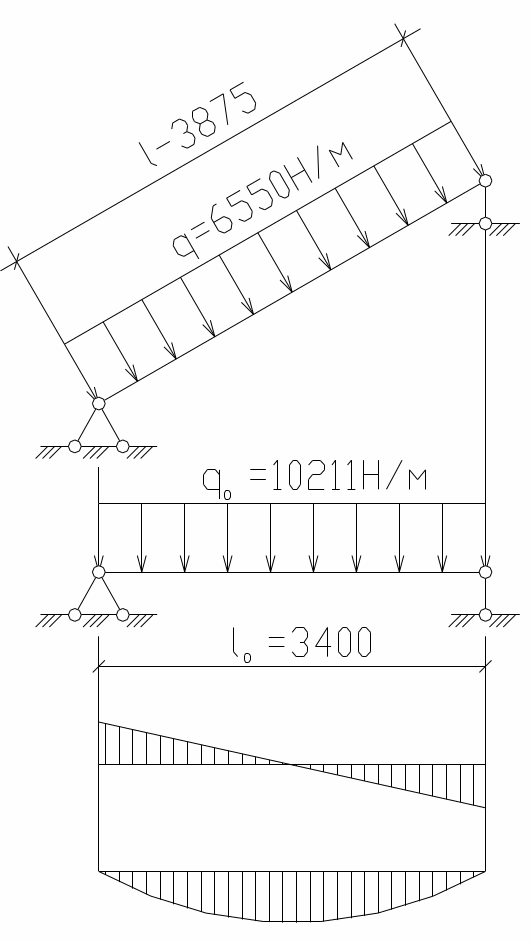 Расчетная схема косоура – балка со свободно опертыми концами и равномерно распределенной нагрузкой.