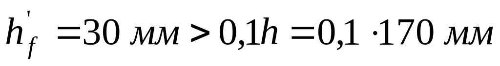 Высота сжатой зоны сечения x=ξ*ho=3мм < hf = 30мм